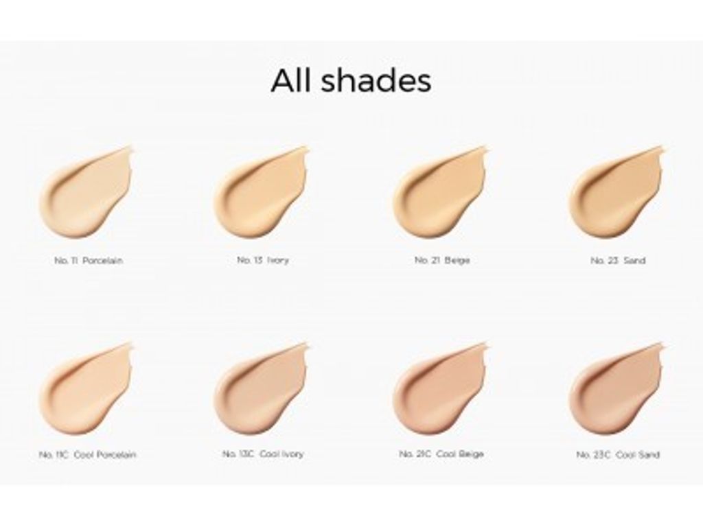 • Technology applied to cushion for the first time! Sparkling Coat™ Pigment Technology coated with pearl and water provides ultimate brightness and moisture to the skin.